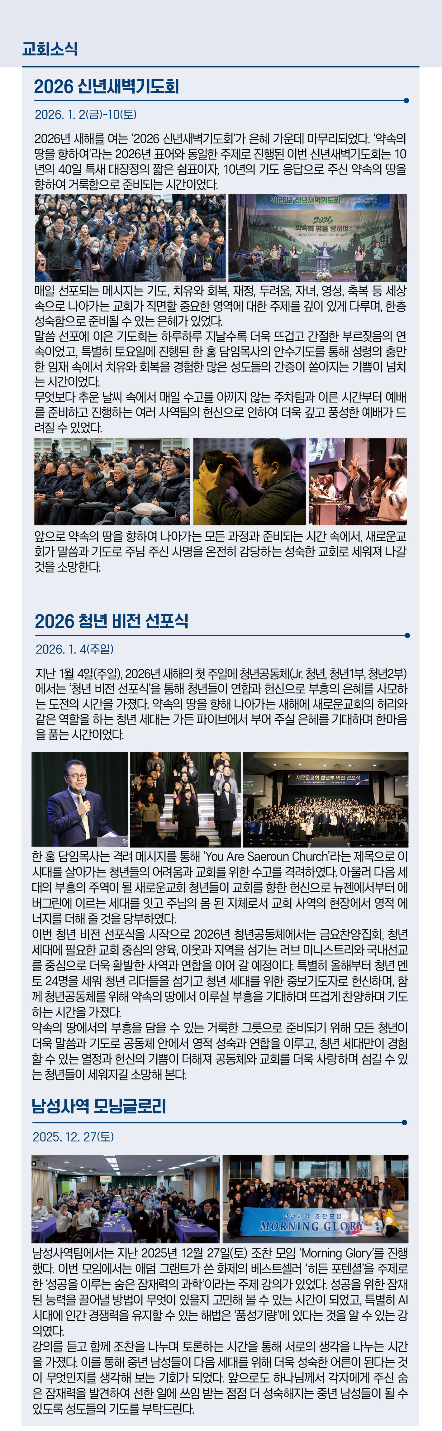 •2026 신년새벽기도회 •2026 청년 비전 선포식 •남성사역 모닝글로리(2026-01-11)