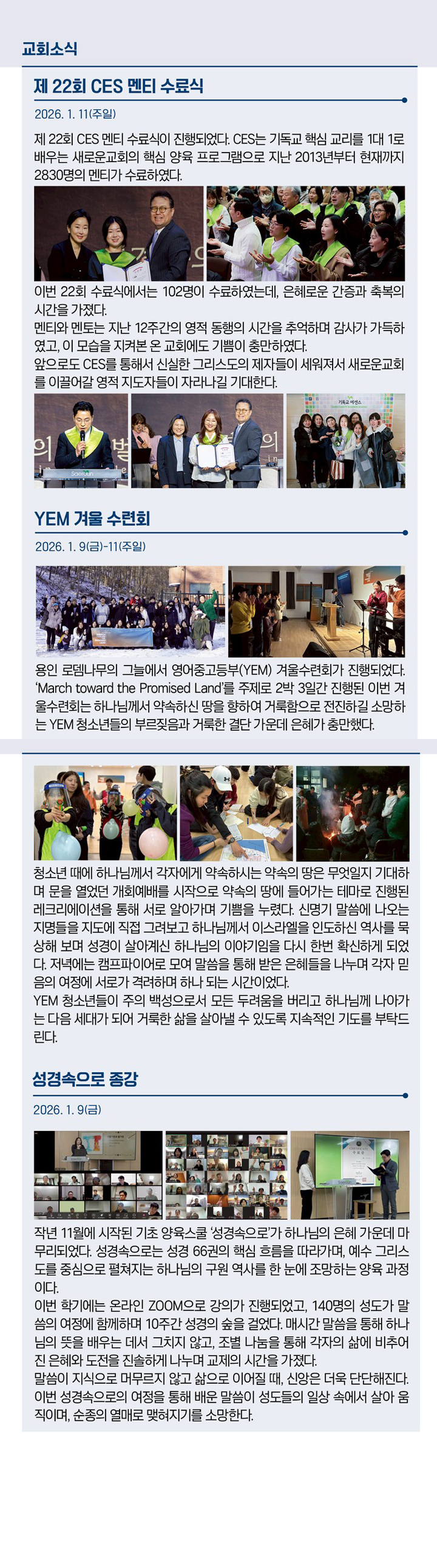 •제 22회 CES 멘티 수료식 •성경속으로 종강(2026-01-18)