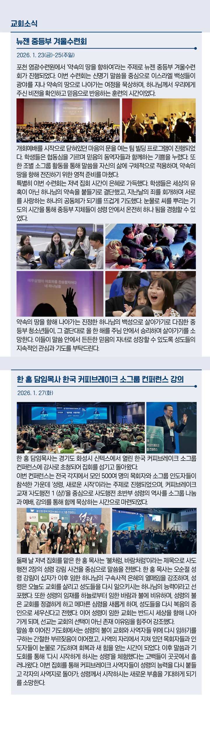 •뉴젠 중등부 겨울수련회•한 홍 담임목사 한국 커피브레이크 소그룹 컨퍼런스 강의(2026-02-01)